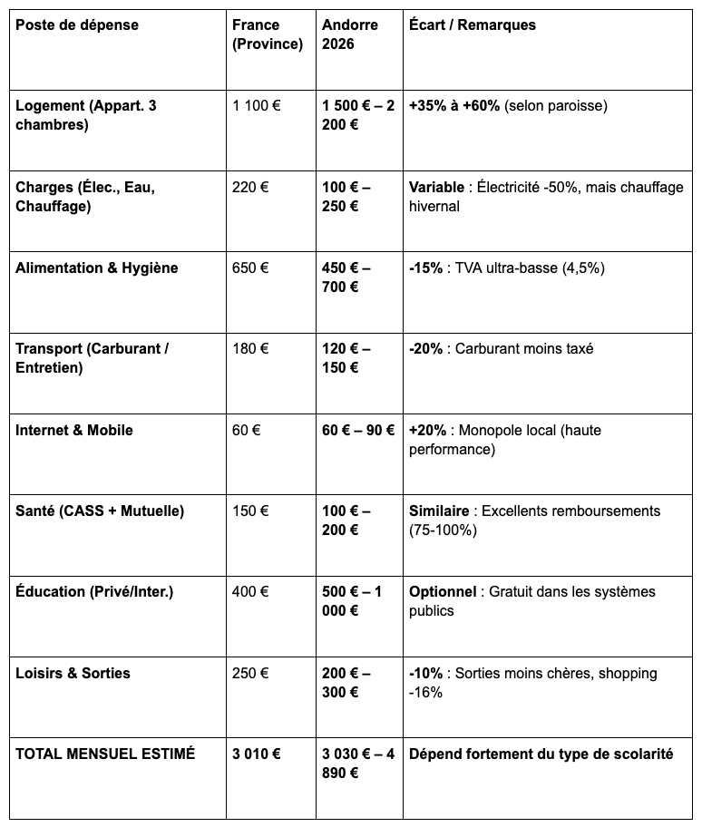Vivre en Andorre en 2026 : quel budget réel prévoir ? (Logement, alimentation, vie locale)